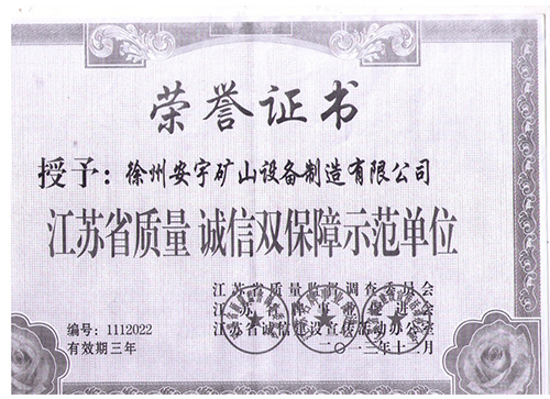 江蘇省質(zhì)量誠信雙保障示范單位