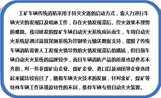 下一頁:礦用工礦車輛滅火裝置——礦用九通長勝礦車自動滅火系統(tǒng)